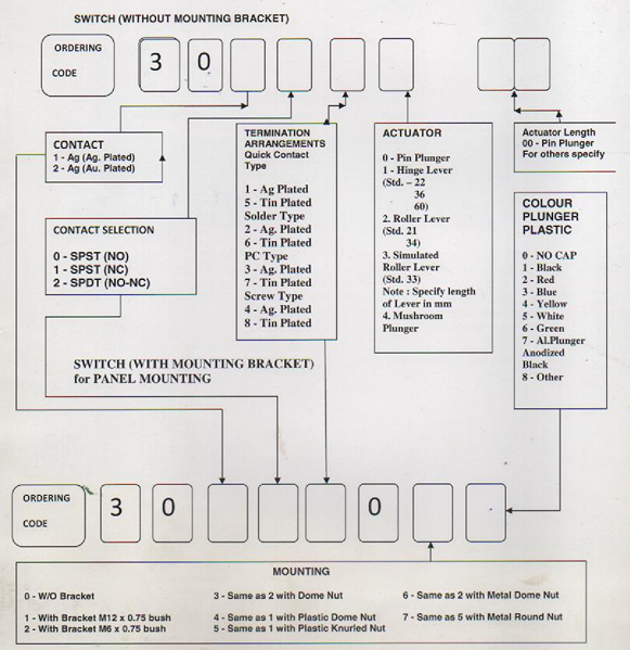 - For Special switches please consult factory with Samples/Drawings